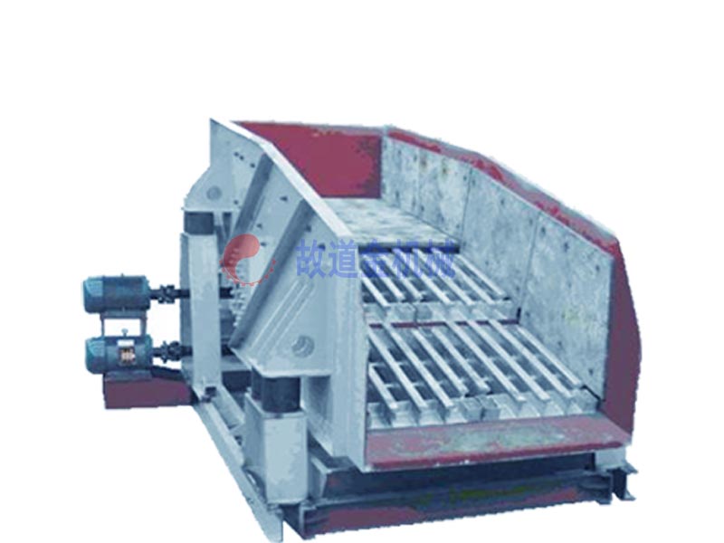 GZT系列棒条给料机有机体、棒条、激振器、电机、支架、减震弹簧等组成,通过电机带动激振器迫使机体做直线振动,物料在料槽内做抛物运动,在出料端布置为特定间距的棒条,物料通过时小于间距的颗粒从间隙落下,大于间隙的物料则从出料端排除。起到预先筛分的作用。